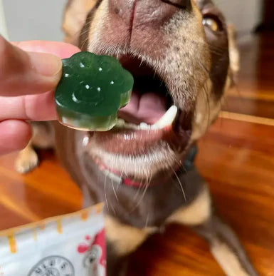 La gelée de superaliments de Lulu's Kitchen contient de la gélatine faite de boeuf d'Australie et de superaliments pour optimiser la santé de votre chien. Il suffit d'ajouter de l'eau bouillante à une portion de la préparation, pour ensuite verser dans des moules et laisser épaissir.