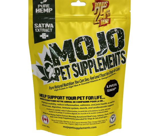 Ces suppléments sont formulés à base d'extrait d'huile de chanvre pure sativa et de protéine de chanvre pure 100% naturels et sûrs pour votre chien et votre chat.