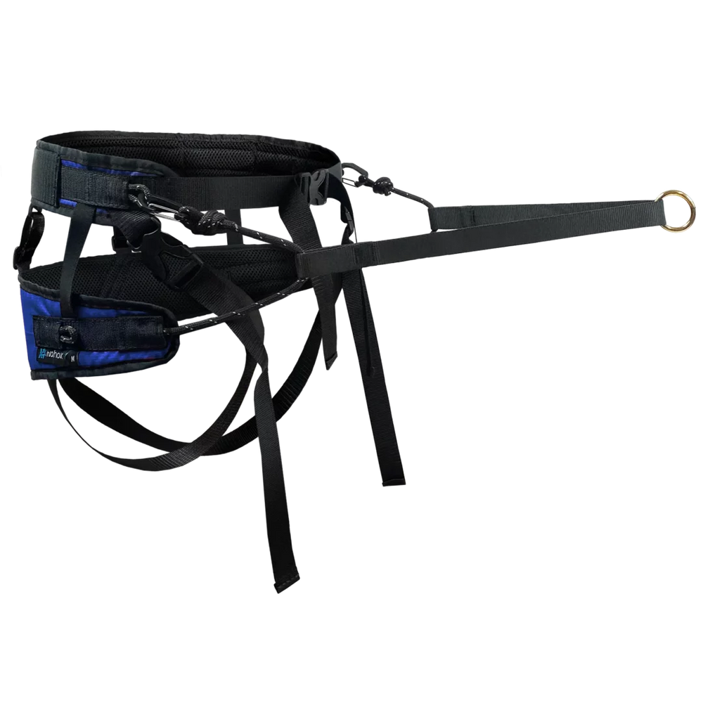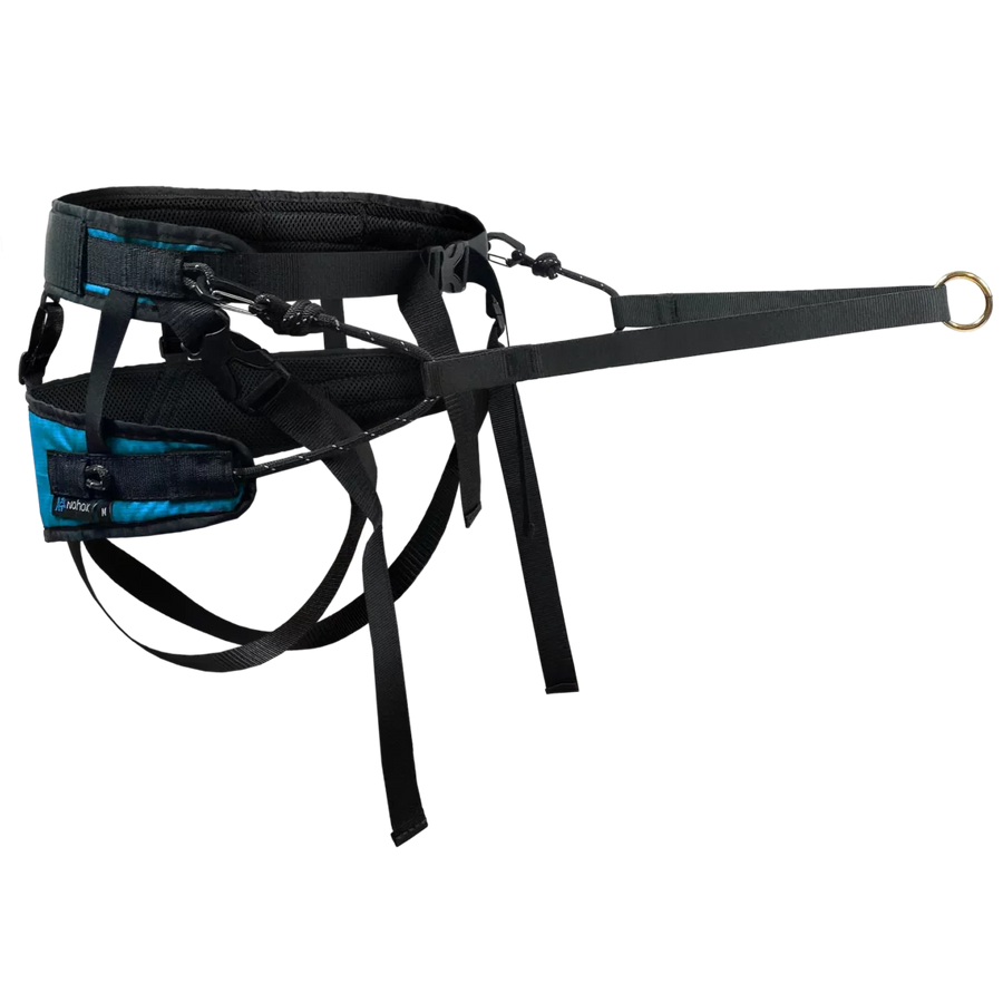 Le design de notre ceinture de traction hybride est unique sur le marché et vous permet, en quelques secondes, de changer le mode de traction désiré. Le mode double traction permet de répartir la force de traction sur tout le bassin et ainsi offrir un confort maximal peu importa la force de votre toutou, particulièrement apprécié en cani-randonnée. À l'opposé, vous pouvez configurer votre ceinture en mode simple traction du bas afin d'éliminer toute tension au bas du dos, mode très efficace en canicross.