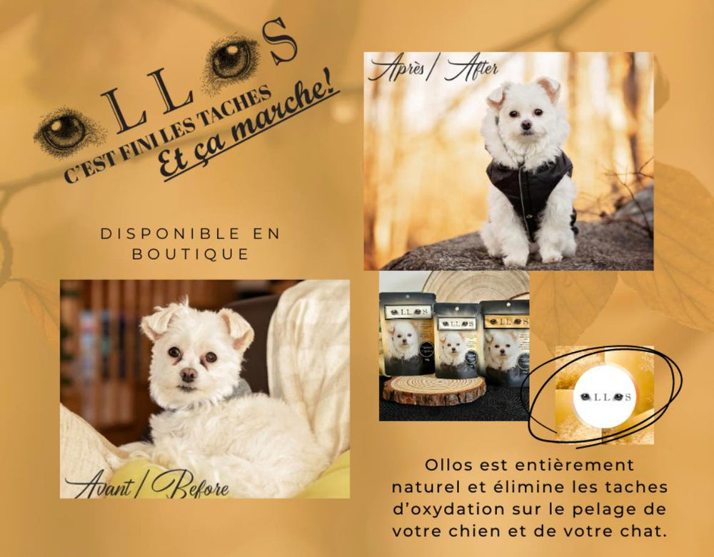 La poudre Ollos contribue à prévenir les taches causées par les larmes chez votre animal en réduisant l'oxydation des muqueuses.