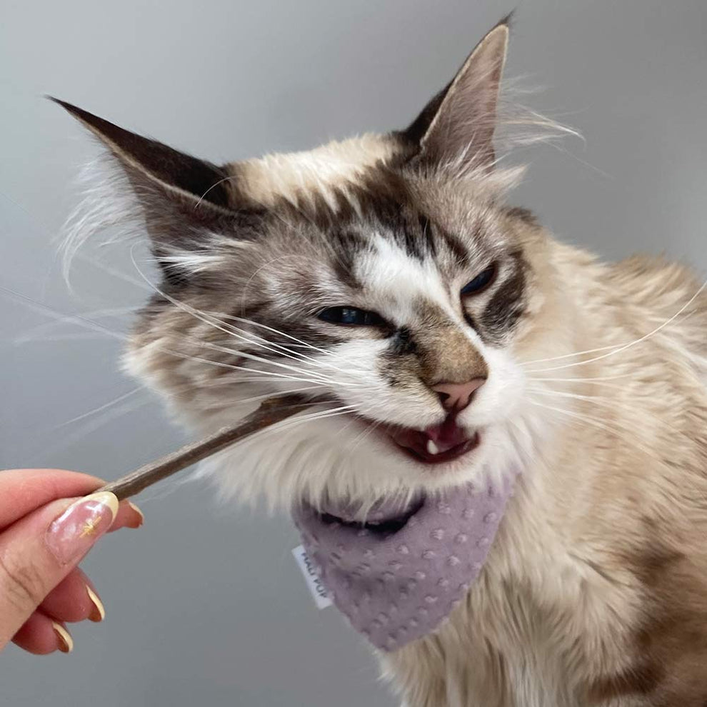 Ces bâtons à mâcher sont une excellente friandise naturelle pour aider à calmer un chat craintif ou stressé.
