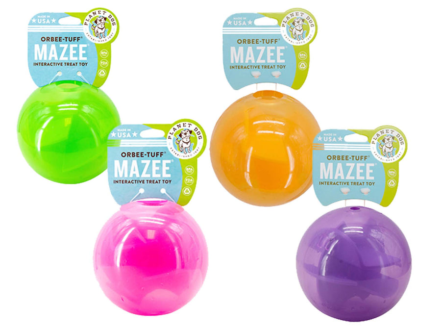 Le Mazee de Planet Dog est un jouet à remplir souple possédant un labyrinthe interne dur qui rend difficile l'expulsion des croquettes ou des gâteries.