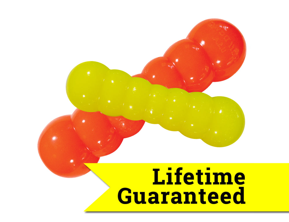 Les jouets Bâtons Ruff Dawg en caoutchouc sont très solides et robustes. Ils sont disponibles en 2 tailles et un assortiment de couleurs fluo très vives.