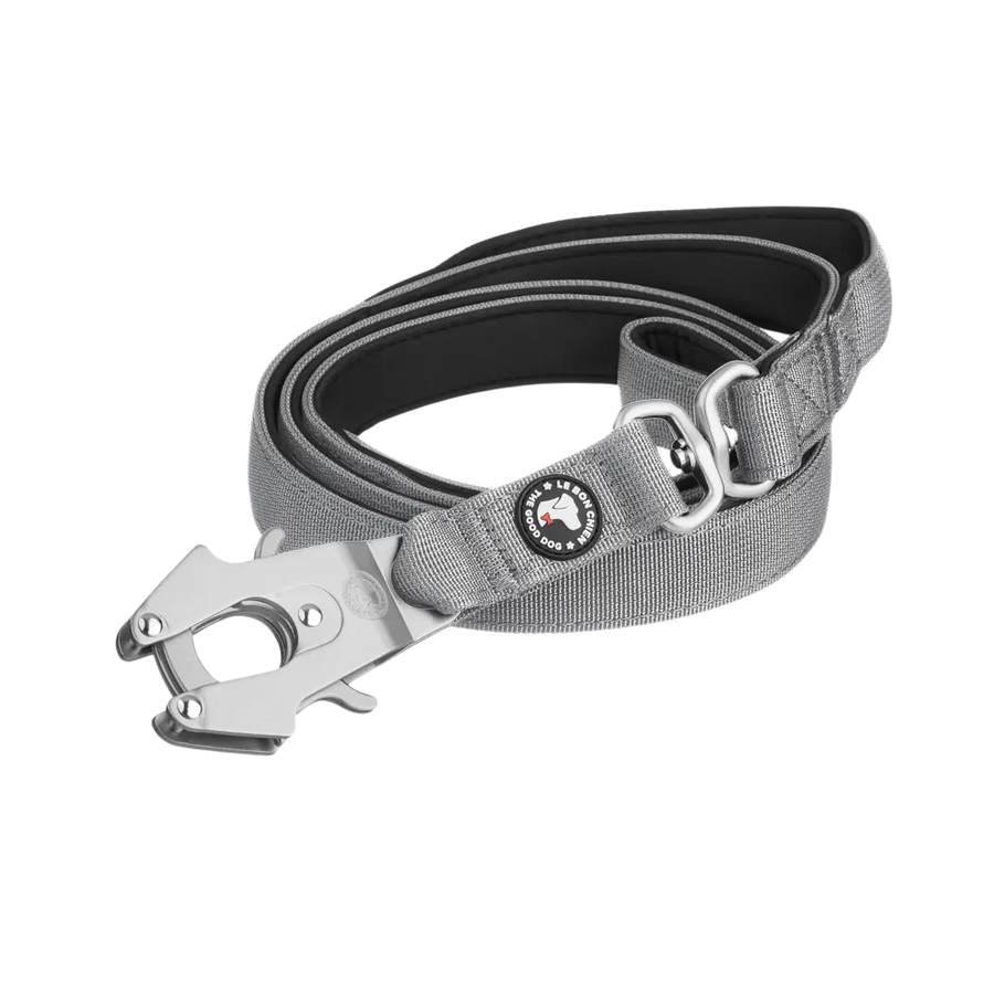 La laisse tactique Le Bon Chien a une longueur de 5 pieds et est fabriquée en nylon 1000D très résistant et durable dans le temps. La doublure en néoprène de la laisse et de la poignée offre plus de confort pour vos mains et une poignée de rappel vous donne plus de contrôle sur votre chien.