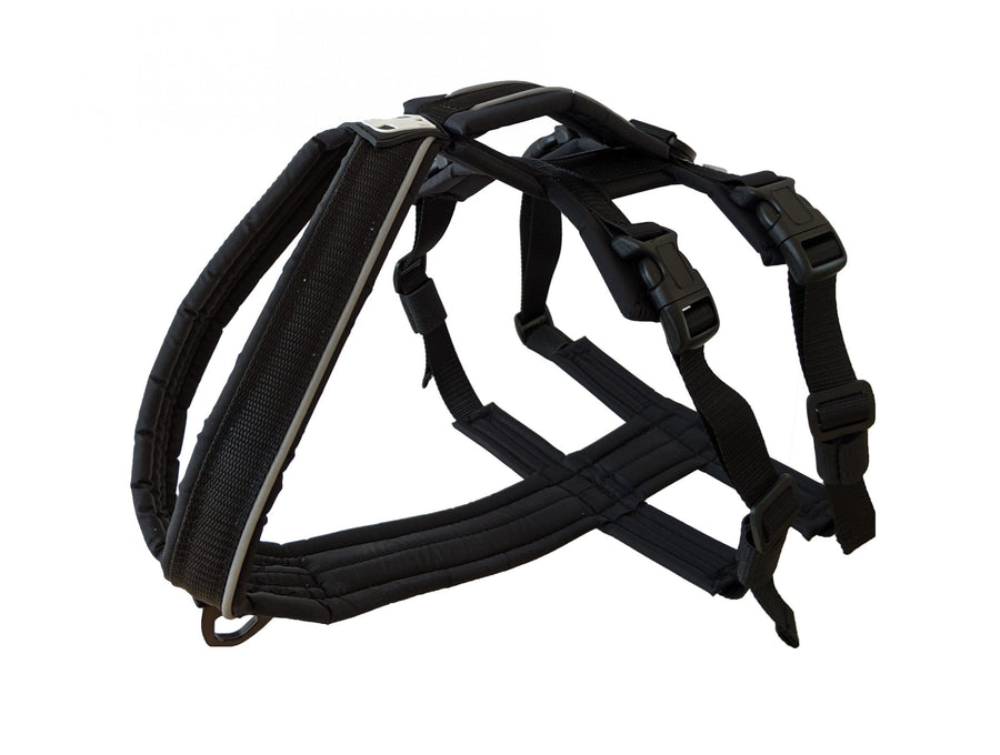 - Possède une attache frontale, une attache dorsale et une poignée facilement accessible ultra-pratique